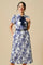 【ストレッチシフォン】藍ほたる ボウタイ付きシャツワンピース