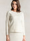 女性らしく小顔に見せる絶妙ボートネック。デコルテもきれいに