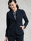 【スーツ対応 】 ネイビー ロングノーカラージャケット